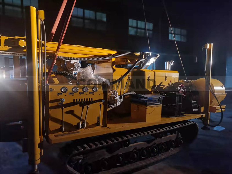 科曼多鉆機(jī)可客戶要求,配備液壓隨車吊、自動裝卸鉆桿裝置、電焊機(jī)、發(fā)電機(jī)等。